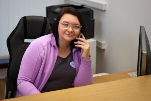 Die gute Seele der Anmeldung ist seit dem 1. Juli 23 bei uns und steht den Patienten für Terminvereinbarungen und alle Fragen rund um die Praxis zur Verfügung.